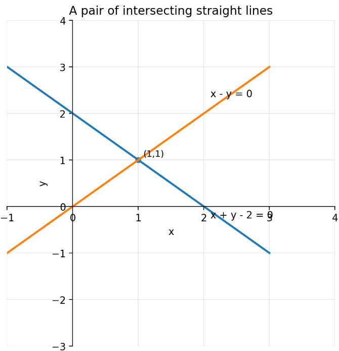 यदि pair of lines intersecting हो, तो उनका point of intersection दोनों equations को simultaneously solve करके निकाला जाता है।