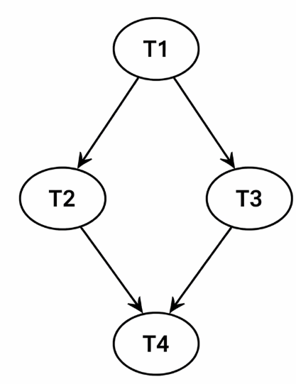 यह graph बताता है कि T2 और T3 parallel भी चल सकते हैं, लेकिन T4 को wait करना पड़ेगा।
